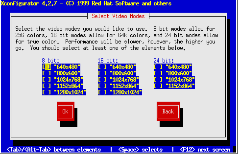 Do not select a mode that exceeds the capacity of your monitor. Once you've either selected the default video mode or specified a different mode, the Starting X dialog (Figure 8-45) lets you test your X configuration.